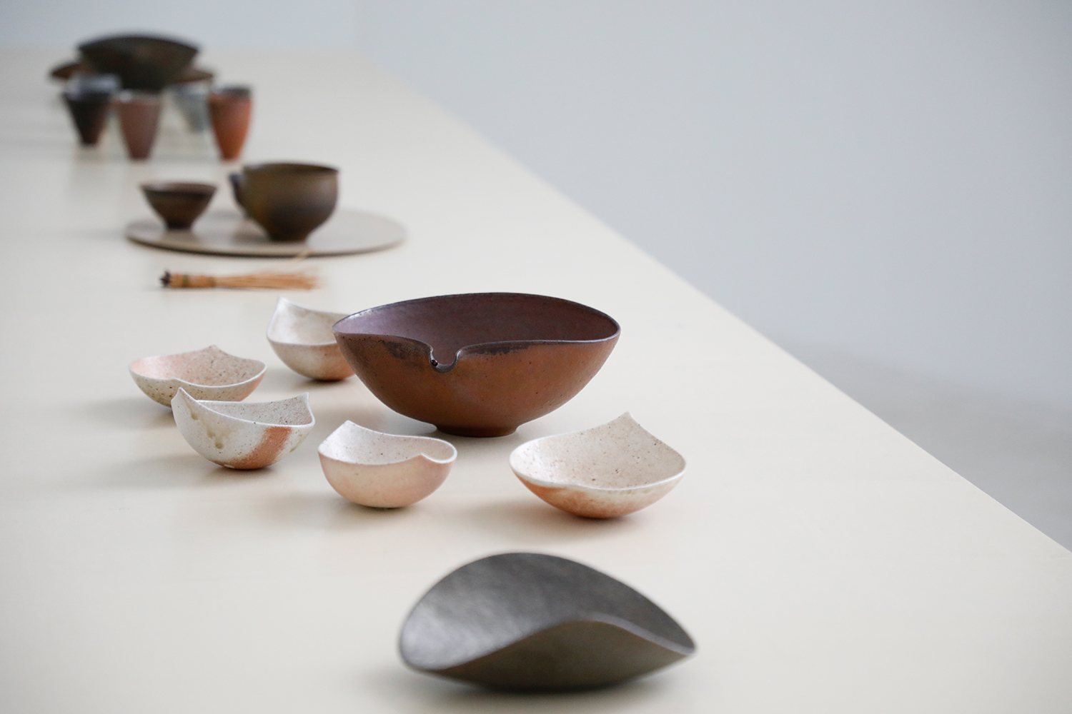 自然に暮らし、自身の手で土を掘り手捻りによって形づくられたうつわは、薪の炎と灰により唯一の美しい表情をみせます。静謐な佇まいのうつわから放たれる自然の息吹をぜひご高覧ください。