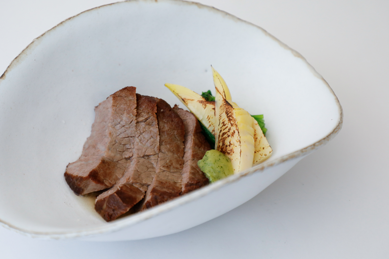 香り高い木の芽味噌に、出汁をくぐらせたやわらかなワインビーフ。旬のやわらかな筍も合わせてお愉しみください。