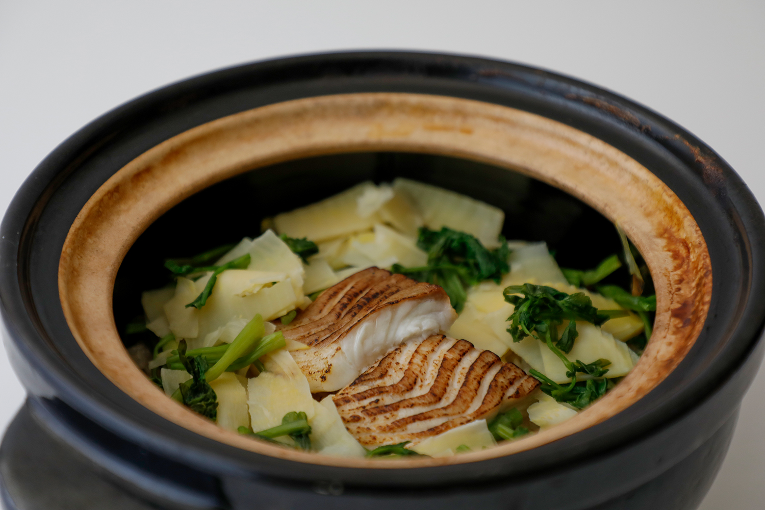 旬の土鍋ご飯「芹と筍の鯛めし」もご用意いたしました。(+¥1,650)