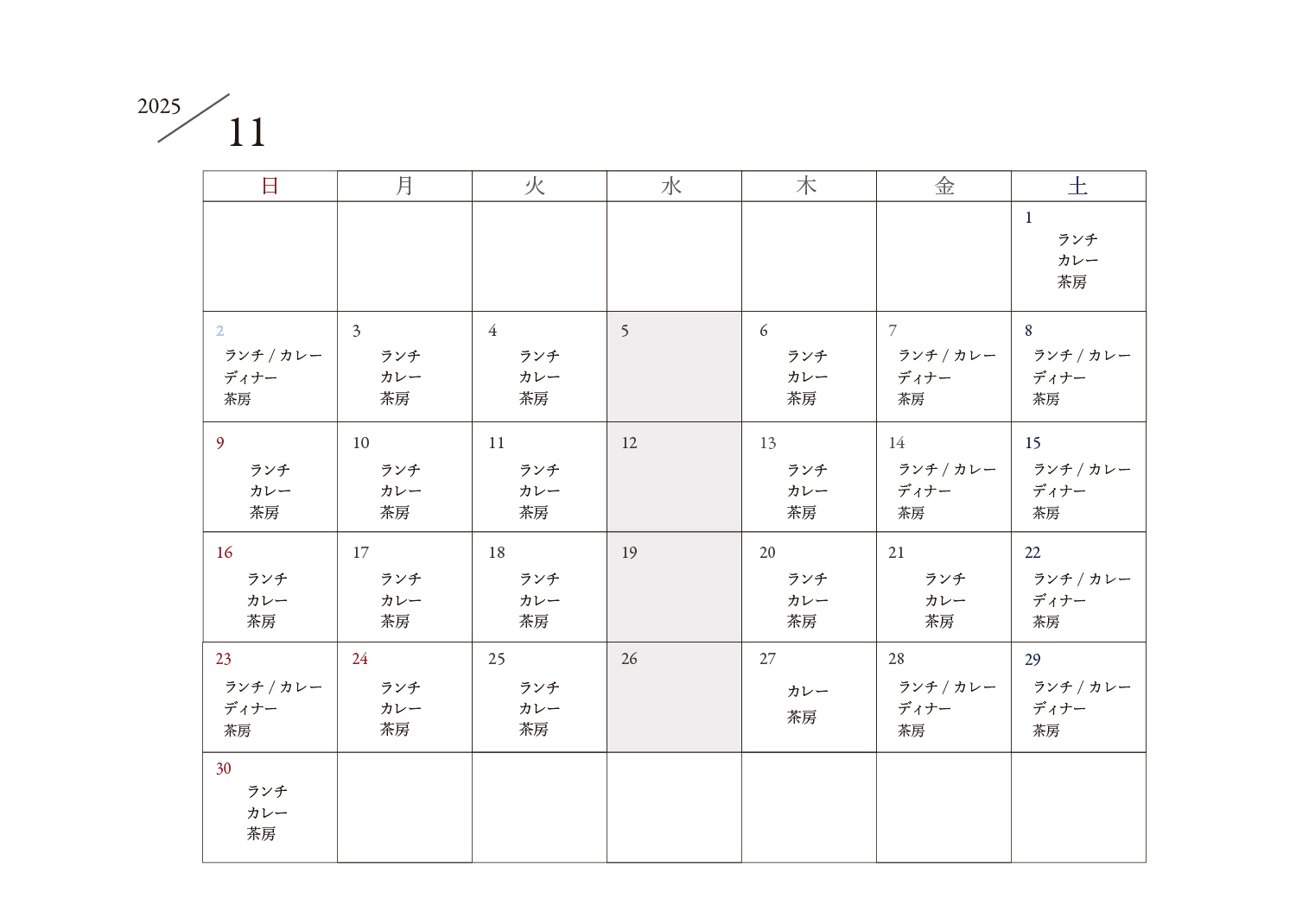 27日(木)はランチ営業をお休みし、カレーのみの提供となります。